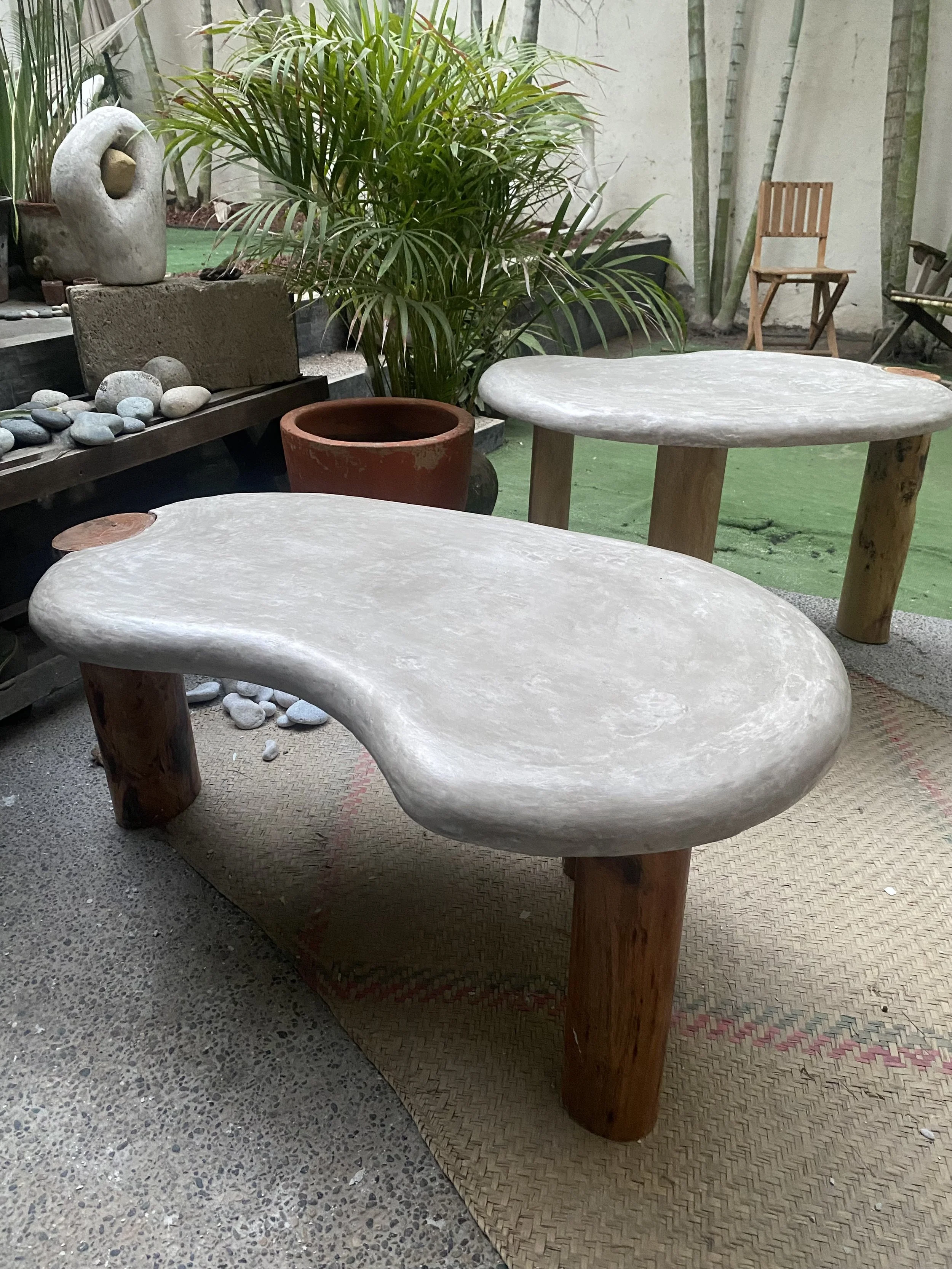 These sculptural tables were designed for my latest project for a condo in Puerto Vallarta. The juxtaposition of these tables added sculpture and art to this room to balance the very soft but structured and angular sofas. All custom work.
